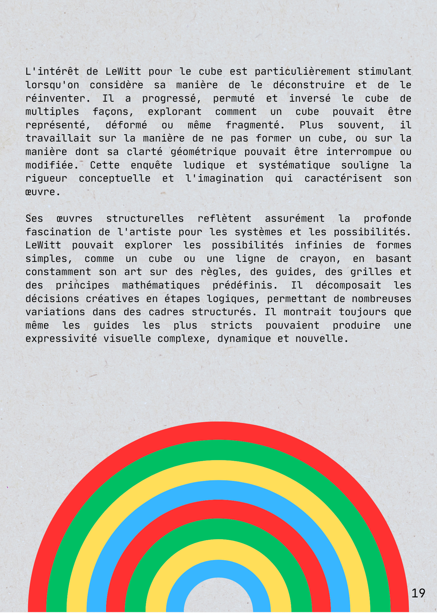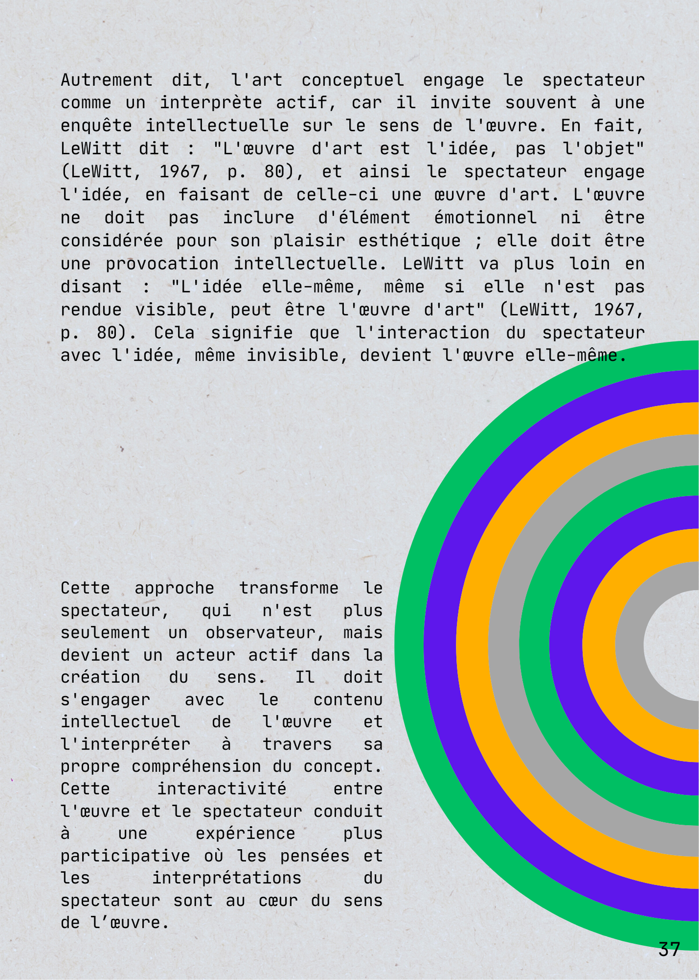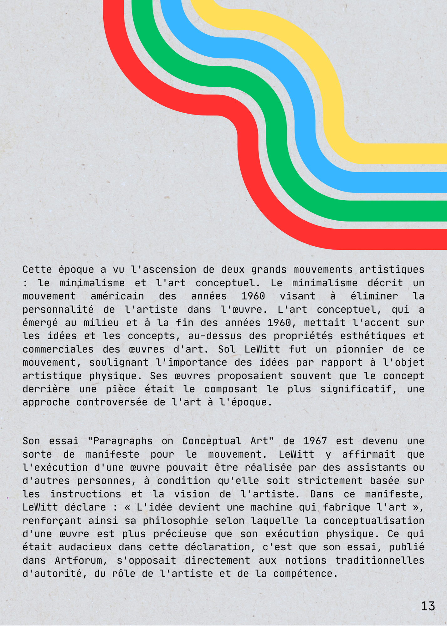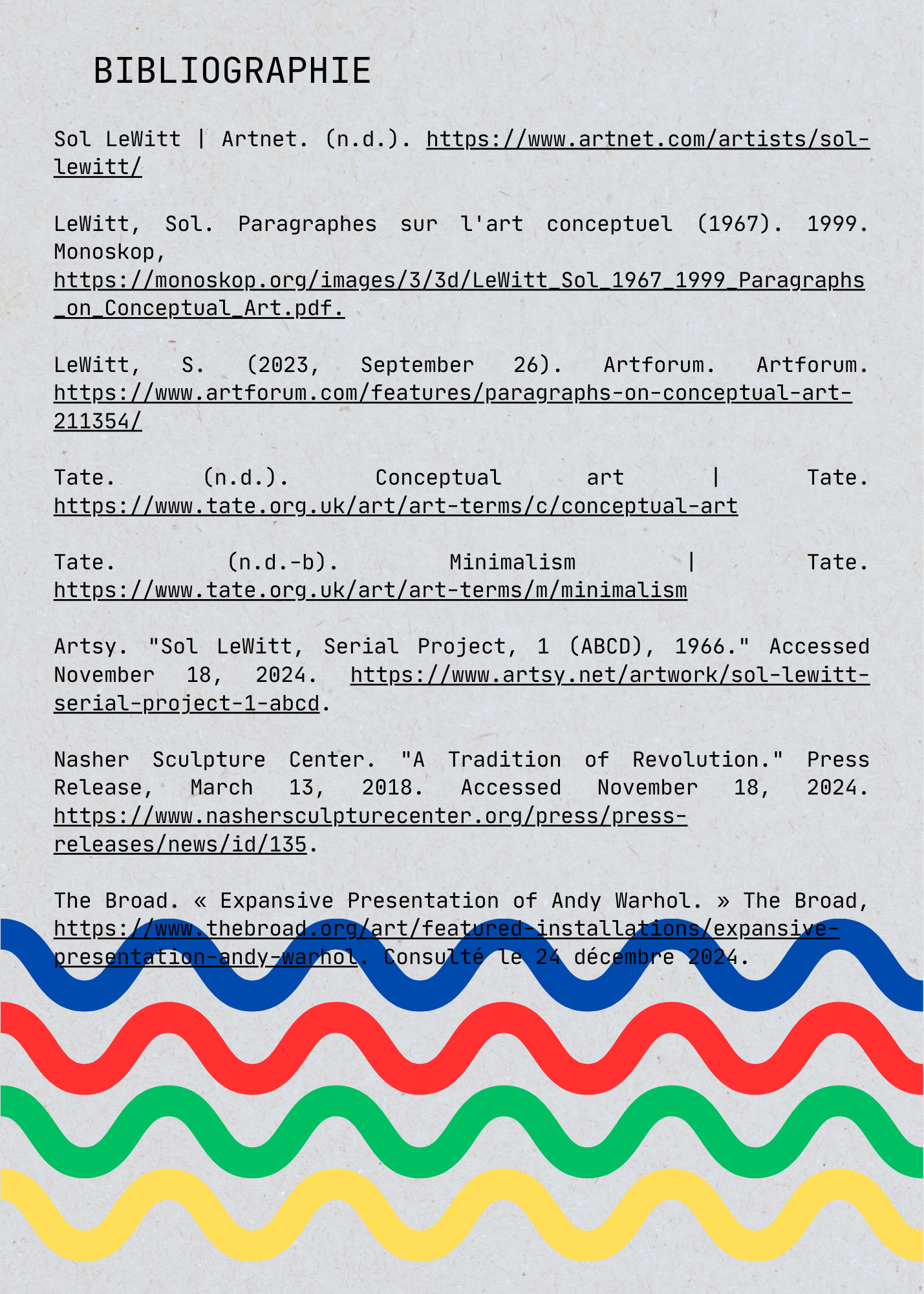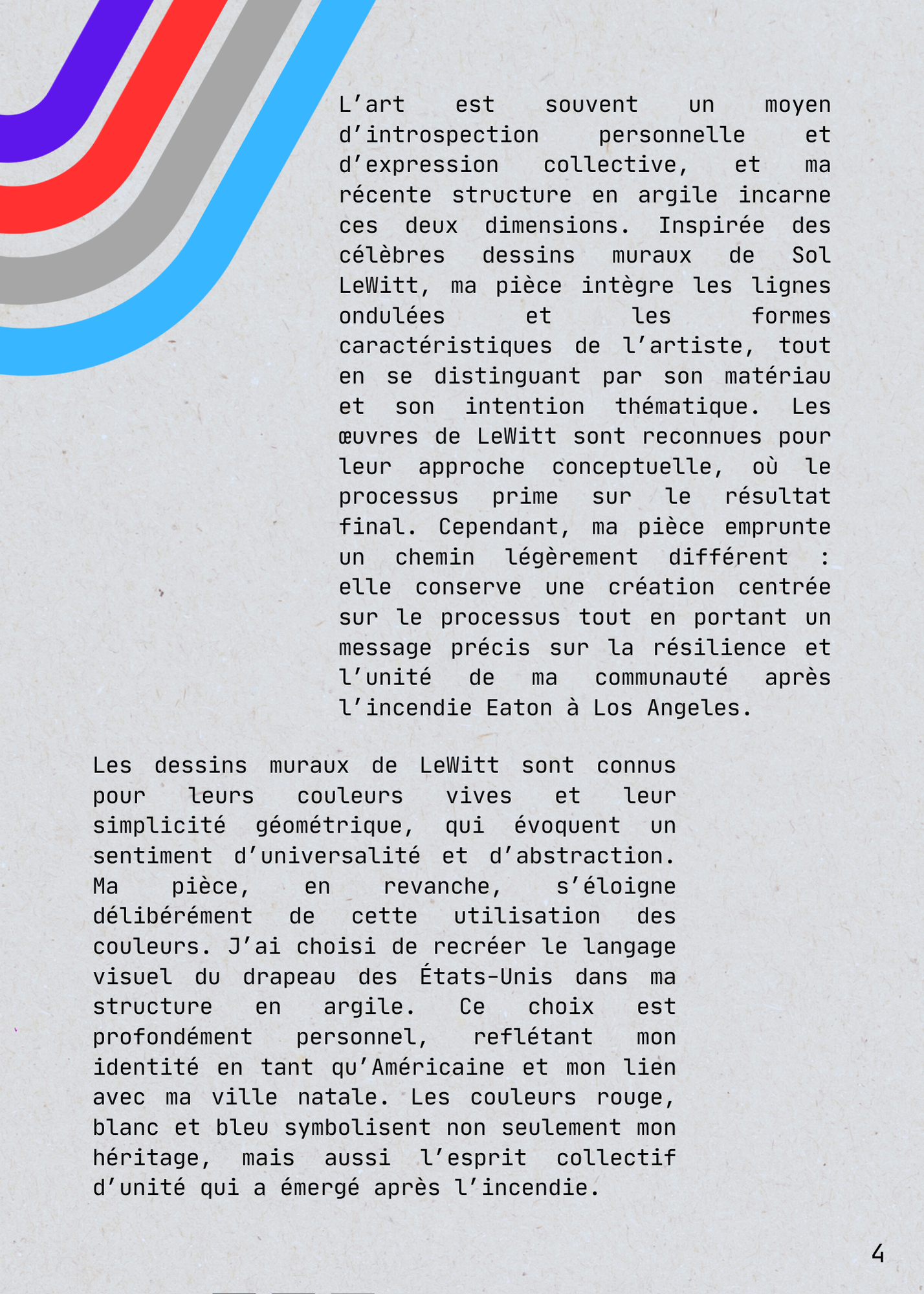 For my Arts Plastiques - Culture Générale course at Université Paul Valéry Montpellier 3, I produced a 47-page thesis. The project involved creating a personal art piece, studying a contemporary artist (Sol LeWitt), analyzing an exhibition, and reviewing a written art work.